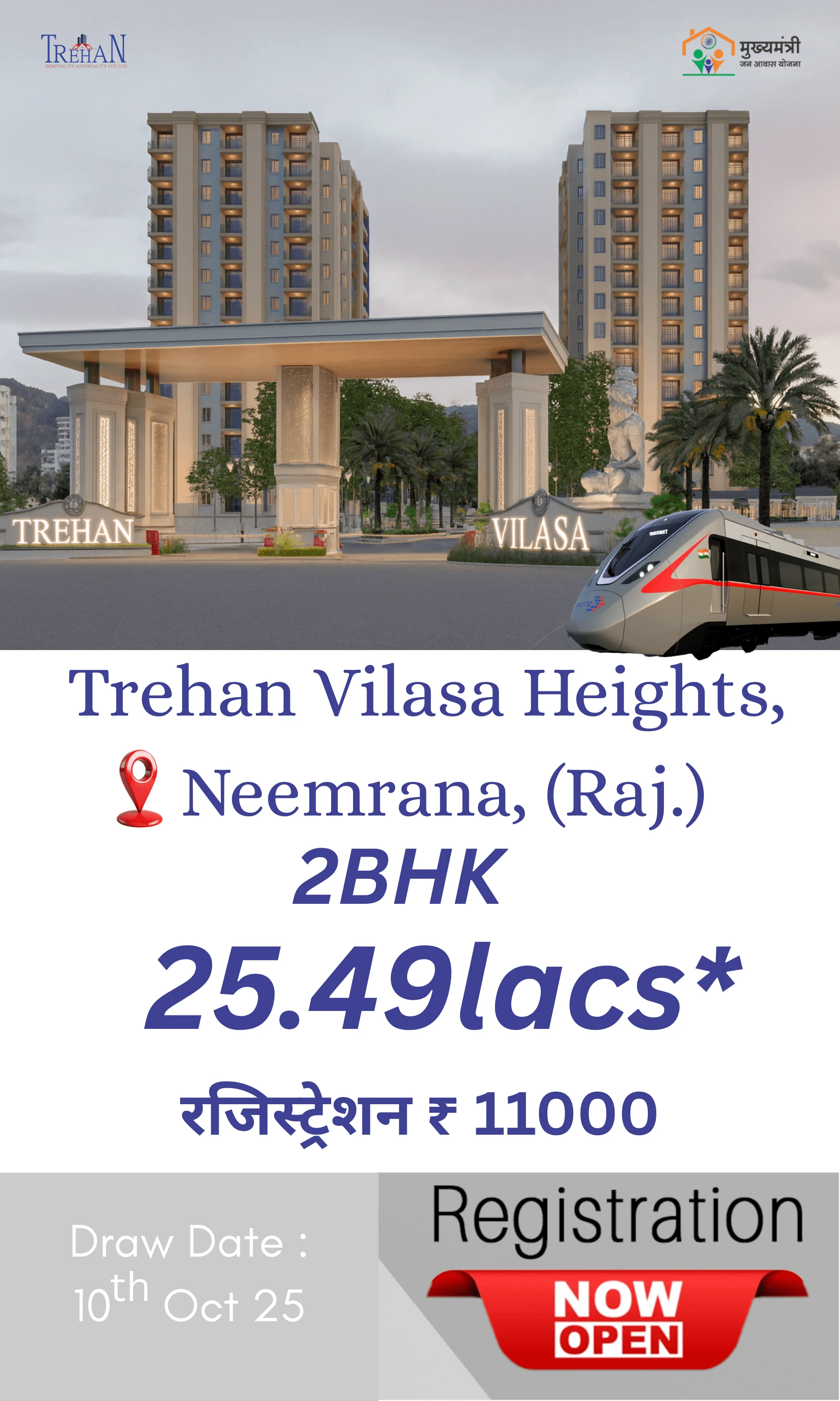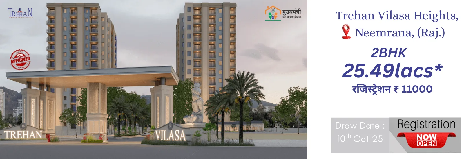Trehan Vilasa Heights brings to you premium residential Flats in the fast-emerging city of Neemrana, Rajasthan – one of the most promising real estate destinations in the NCR region. Thoughtfully planned and developed by Trehan Developers, a trusted name with decades of experience in the real estate industry, this project is designed to cater to the aspirations of both homebuyers and investors.
